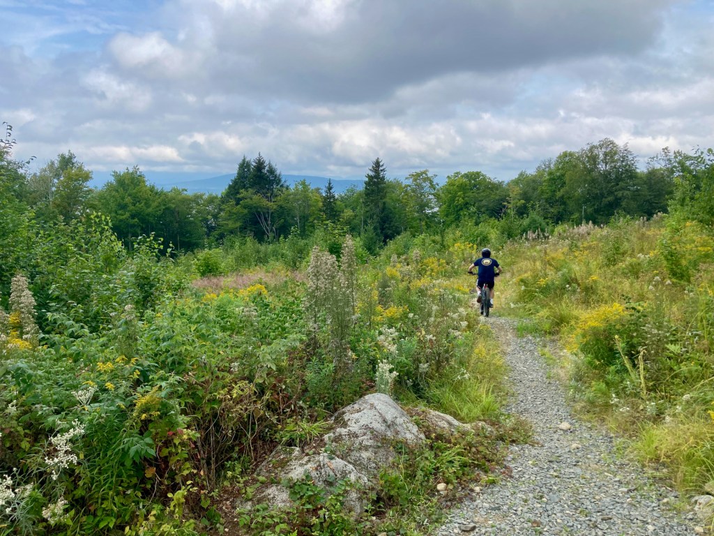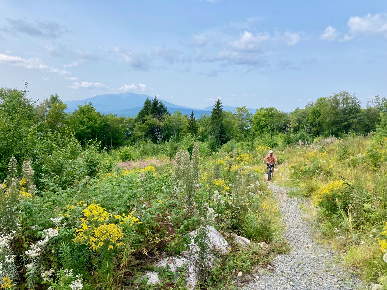 While the trails at the New England Outdoor Center (NEOC) are short on miles (about 5 are complete – more in the works) they make up for it in views. It’s tough to beat coming down this section through a meadow with Katahdin in the distance. These trails are smooth and flowy and fun. The full loop can be done at an easy pace in just about an hour – and it’s worth going around again.